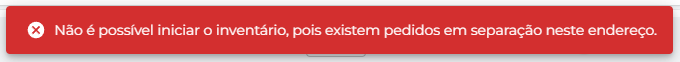 Se um endereço está sendo usado para uma Separação de pedido em andamento, ele não pode ser inventariado.