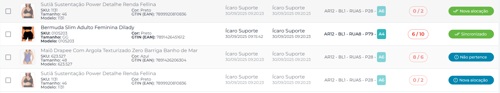 Se um produto ou endereço está ativamente em processo de Inventário, ele não pode ser separado por nenhum operador.