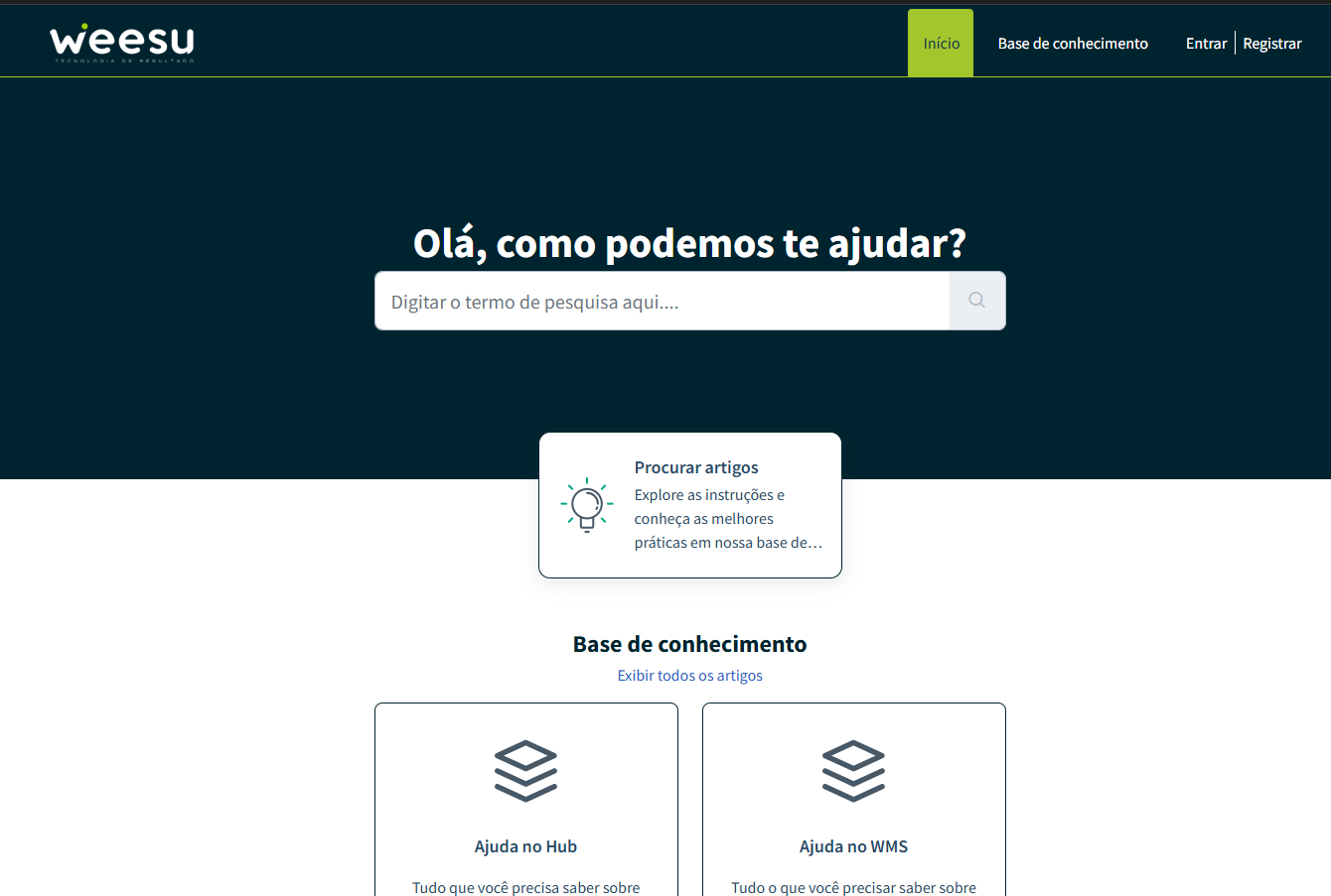 O portal de suporte da Weesu é um site onde você pode abrir chamados, acompanhar o andamento das suas solicitações via Whatsapp e consultar artigos da base de conhecimento. Ele é baseado na plataforma Freshdesk, mas você acessa tudo em um único ambiente com a identidade visual da Weesu.