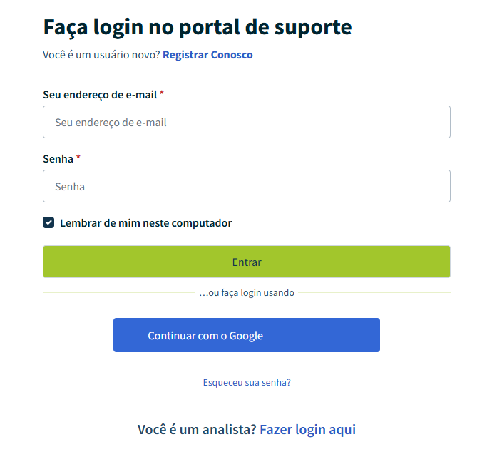 Ao clicar no link, você será direcionado para a página de login do portal de suporte.