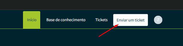 - Clique no botão “Enviar um Ticket”, geralmente visível no topo da página.