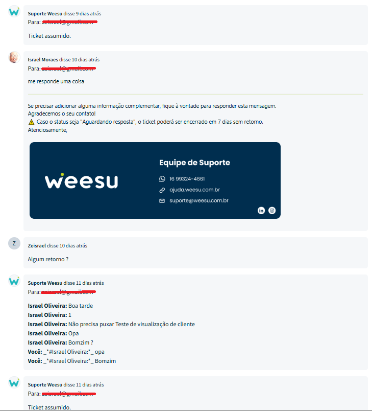 Caso ainda tenha dúvidas sobre o uso do portal, você pode registrar um chamado solicitando ajuda com o próprio acesso ou seguir as instruções de contato divulgadas pela Weesu, via Whatsapp+55 (16) 99324-4661.