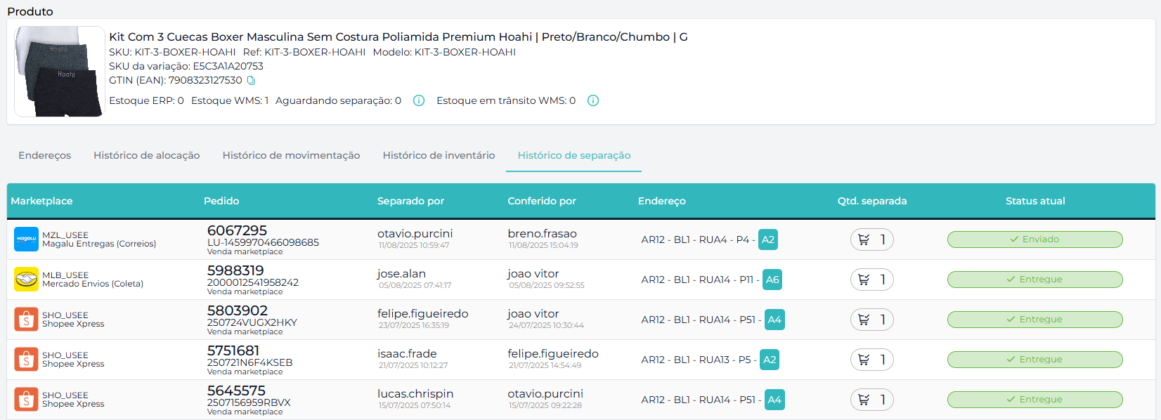 Agilizamos o seu acesso à informação. Agora você pode visualizar o histórico de separação na pesquisa rápida, ao procurar por um produto específico