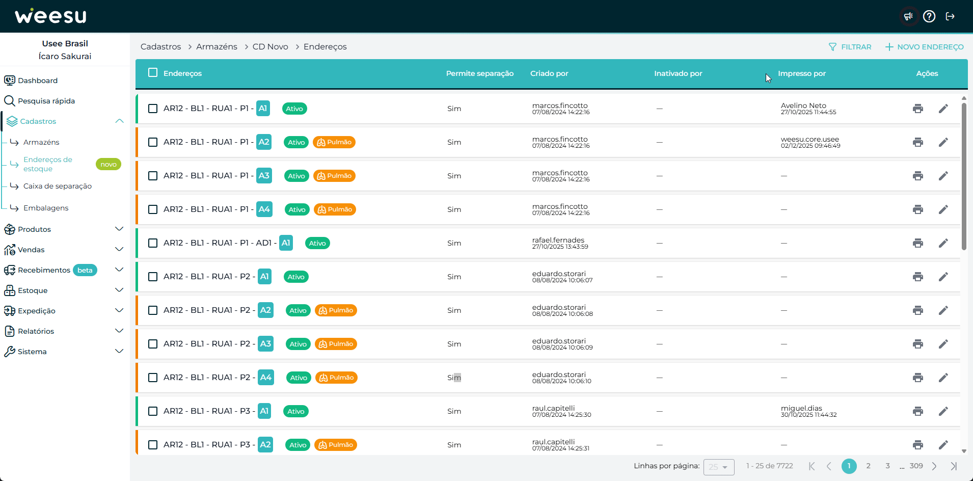 Permite Picking: Define se o endereço está liberado (ou bloqueado) para a separação de pedidos.